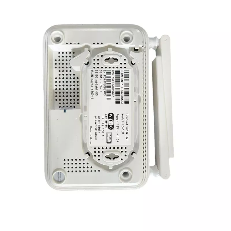 Visokokakovosten TENKILOMETERS ZXHN F6610M Dual Band Wifi6 GPON ONU ONT je inteligenten optični omrežni terminal tipa usmerjanja Wi-Fi 6 s 4 vrati GE, 1 vrati POTS in 1 vrati USB ter povezljivostjo 2,4G in 5G Wi-Fi. Izdelek uporablja tehnologijo gigabitnega pasivnega optičnega omrežja (GPON), ki uporabnikom ponuja ultra širokopasovni dostop, visoko zmogljivost in široko pokritost. Z visoko zmogljivostjo posredovanja — ki zagotavlja izjemno izkušnjo za glasovne, podatkovne in video storitve visoke ločljivosti (HD) — kot tudi v prihodnost usmerjene storitvene podporne zmogljivosti.